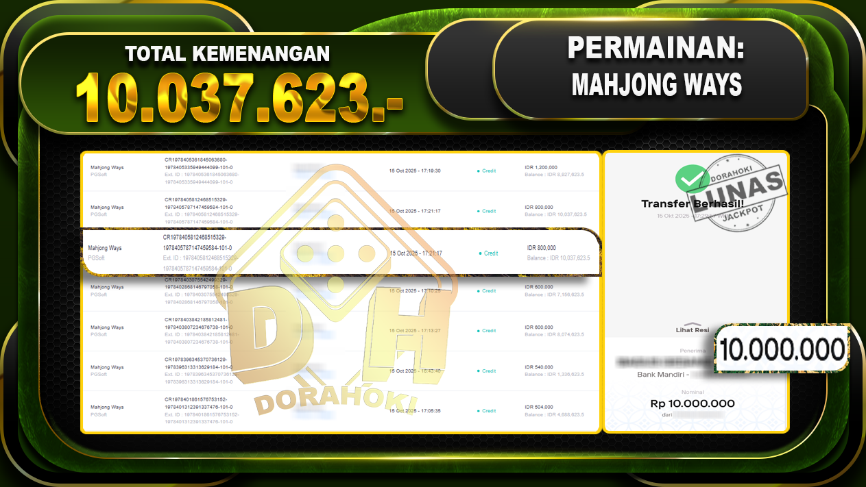 Bukti JP 15.000x Mania – Yang kami berikan ini sah dan real tanpa di rekayasa bosku dan hanya bertujuan untuk meningkatkan kepercayaan member kami dan memberikan kenyamanan saat bermain jadi bosku tidak perlu khawatir MENANG BERAPAPUN PASTI KAMI BAYAR LUNAS!!