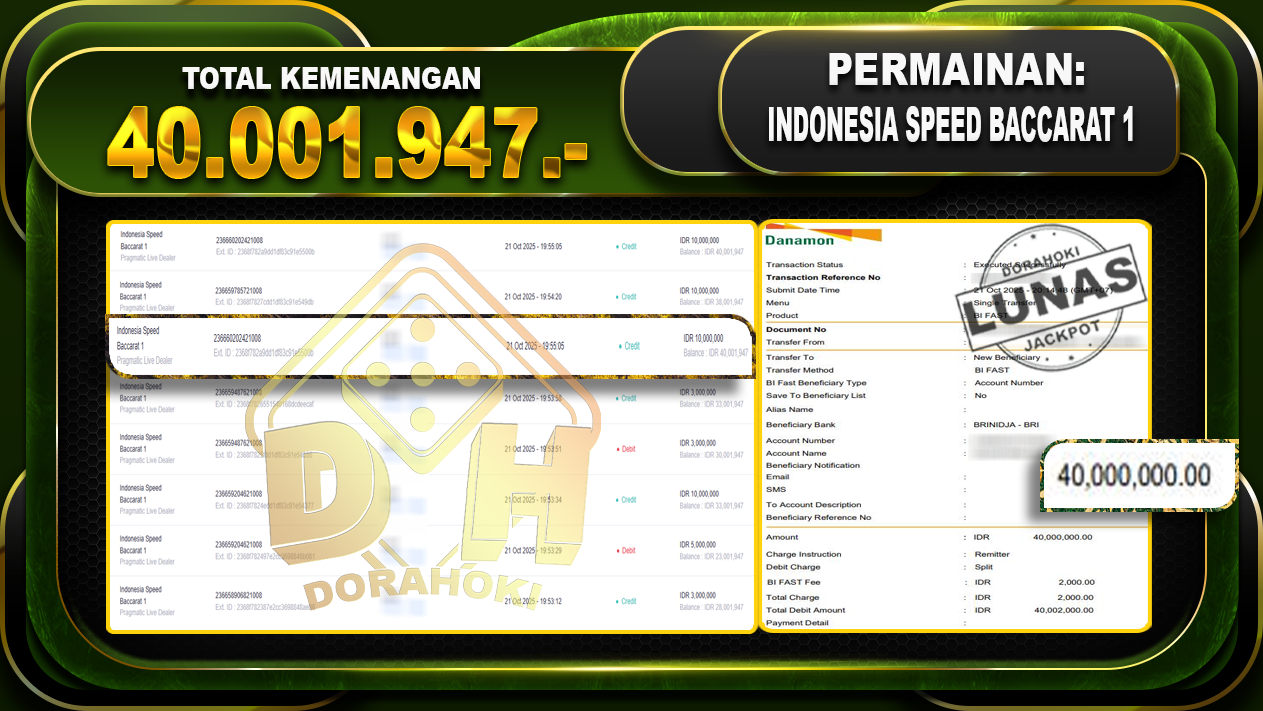 Bukti JP BACCARAT – ucapkan selamat kepada user id Jixxx atas kemenangan di BACCARAT dengan total kemenangan Rp.40,000,000,- . Yang pasti nya langsung LUNAS sesuai bukti ya bosku. Dorahoki nih bosku berapapun akan tetap kami bayar lunas ya bosku.