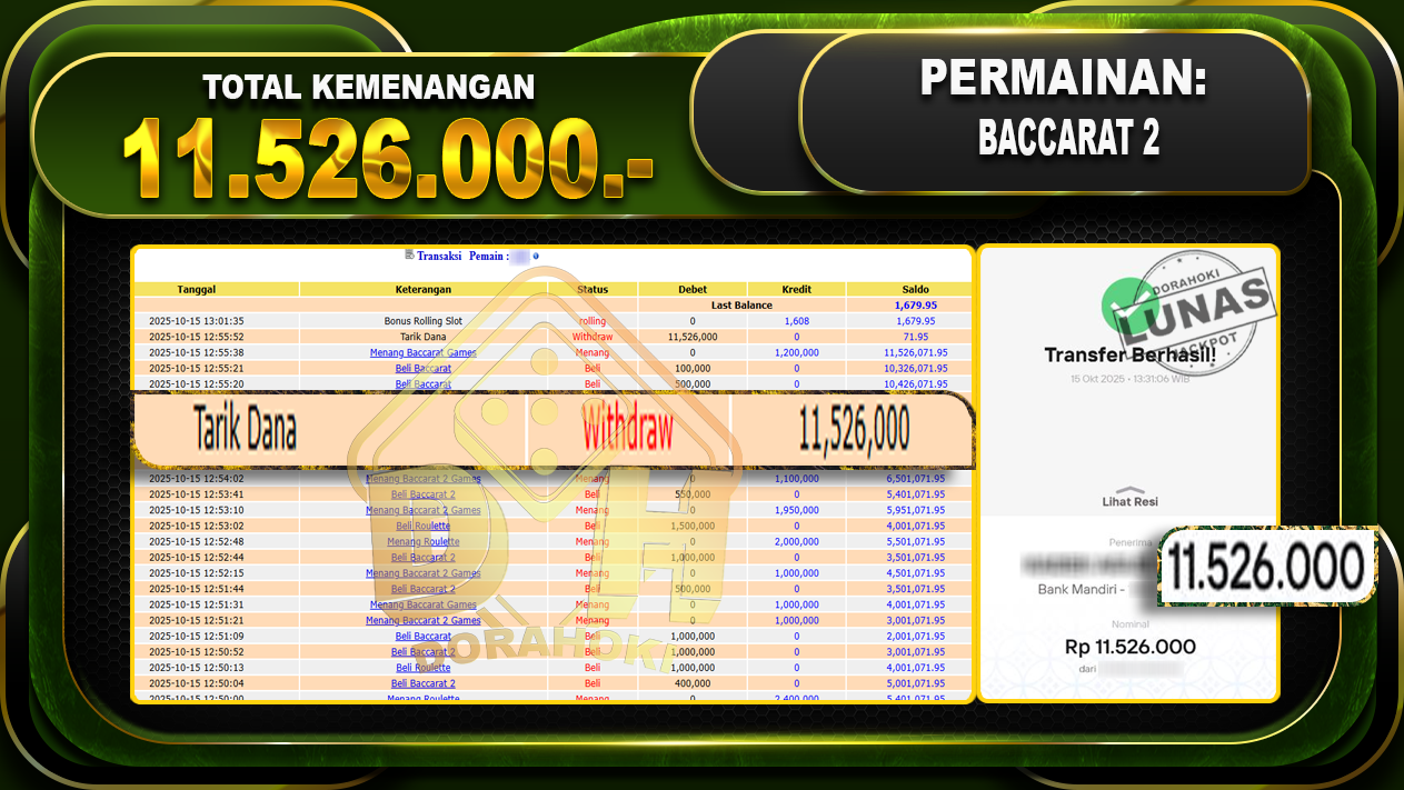 Bukti JP 12D Thunder – ucapkan selamat kepada user id Palemxxxx atas kemenangan di 12D Thunder dengan total kemenangan Rp.65,000,000,- . Yang pasti nya langsung LUNAS sesuai bukti ya bosku. Dorahoki nih bosku berapapun akan tetap kami bayar lunas ya bosku.