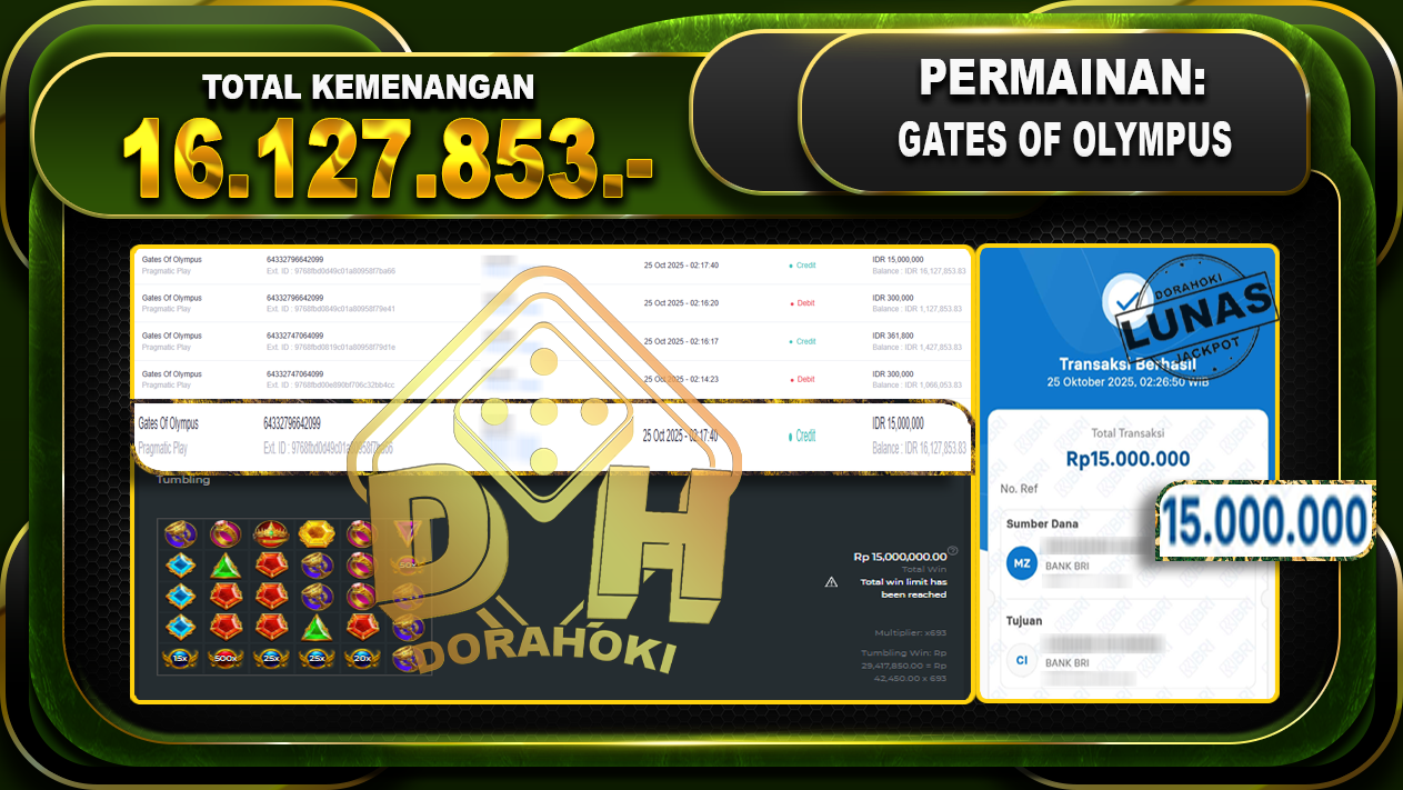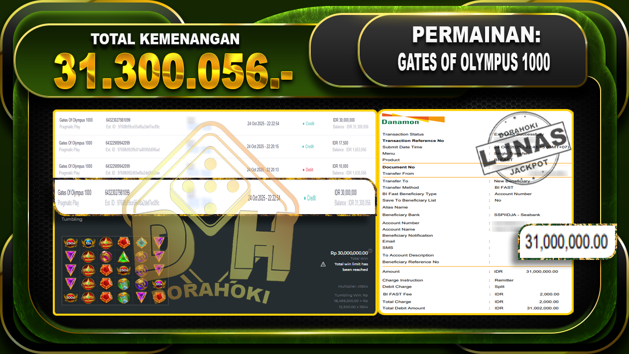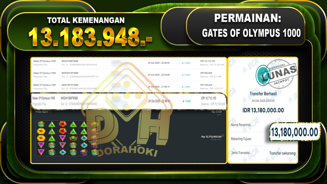 Bukti JP Gates Of Olympus 1000 – ucapkan selamat kepada user id Abaxxxxx atas kemenangan di Gates Of Olympus 1000 dengan total kemenangan Rp.79.596.702,- Yang pasti nya langsung LUNAS sesuai bukti ya bosku. Dorahoki nih bosku berapapun akan tetap kami bayar lunas ya bosku