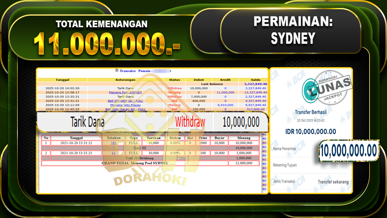 DORAHOKI NIH BOSKU! MENANG BERAPAPUN PASTI KAMI BAYAR LUNAS!!