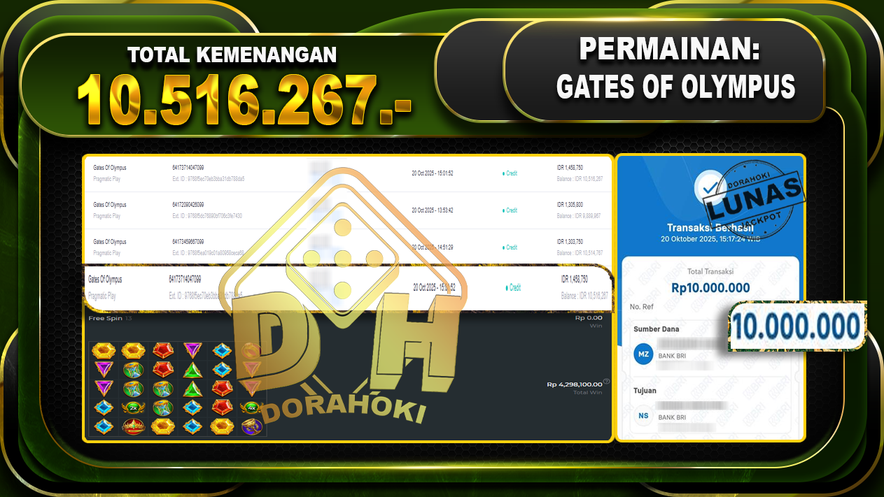 Bukti JP Gates Of Olympus 1000 – ucapkan selamat kepada user id salxxxxx atas kemenangan di Gates Of Olympus 1000 dengan total kemenangan Rp.10,516,267,- Yang pasti nya langsung LUNAS sesuai bukti ya bosku. Dorahoki nih bosku berapapun akan tetap kami bayar lunas ya bosku