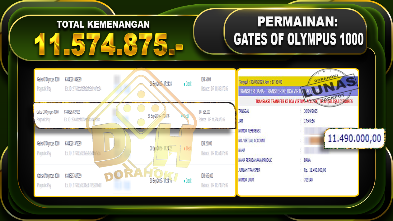 Bukti JP Gates Of Olympus 1000 – ucapkan selamat kepada user id ekaxxx atas kemenangan di Gates Of Olympus 1000 dengan total kemenangan Rp.11,574.875,- Yang pasti nya langsung LUNAS sesuai bukti ya bosku. Dorahoki nih bosku berapapun akan tetap kami bayar lunas ya bosku