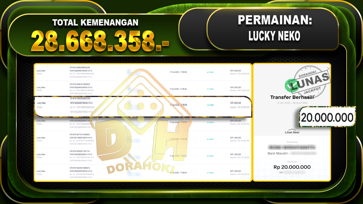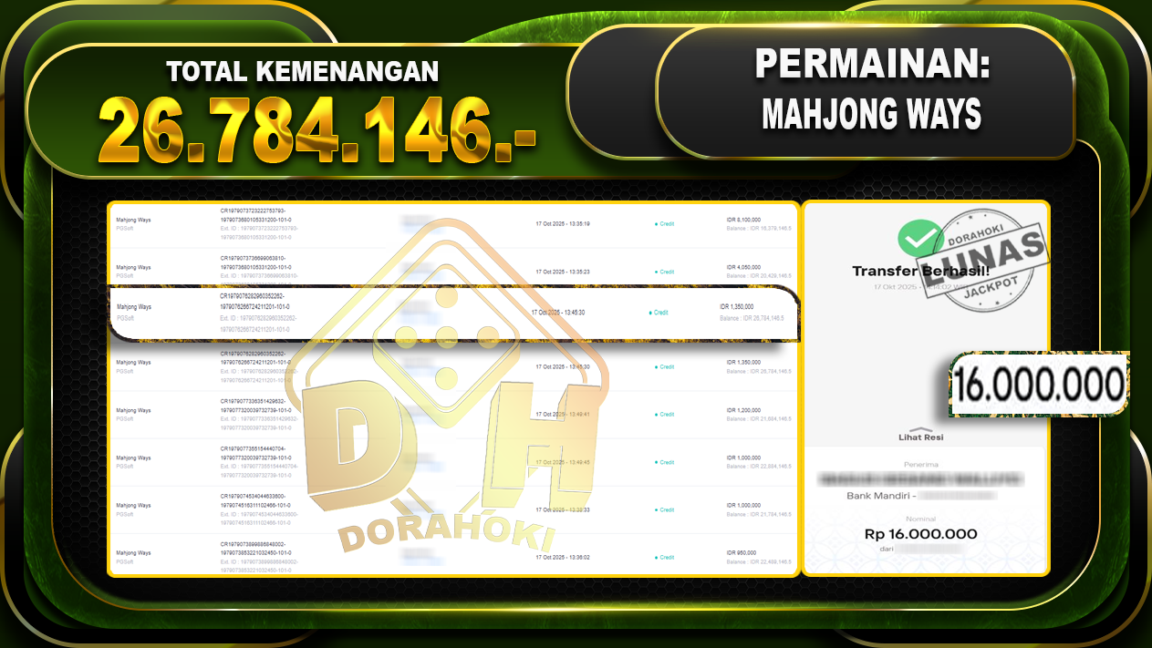 Kami mengucapkan Terima Kasih telah mempercayakan DORAHOKI sebagai Bandar Online pilihan dalam bermain judi online. Semoga bosku bisa tetap bermain dengan nyaman ya bosku di Bandar Online kami ini ya bosku. Jika ada kendala bisa langsung hubungi CS kami di livechat dan WA yang online 24 jam tanpa libur ya bosku. Semoga kedepannya bosku bisa JP lebih banyak lagi dan tentu saja tidak perlu khawatir untuk pembayaran. DORAHOKI merupakan Bandar Online yg Aman dan Terpercaya JackPot berapapun pasti akan kami bayarkan langsung LUNAS ya bosku.