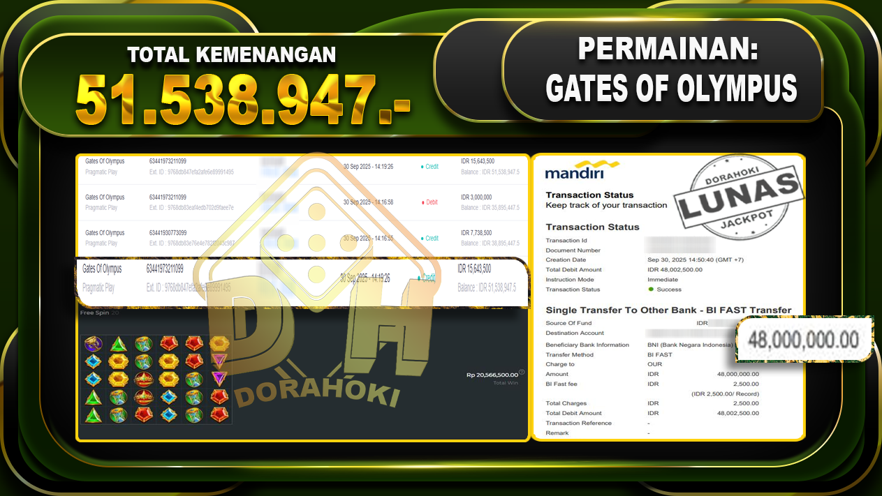 Bukti JP Gates Of Olympus – ucapkan selamat kepada user id kamxxxxxx atas kemenangan di Gates Of Olympus dengan total kemenangan Rp.51,538.947,- Yang pasti nya langsung LUNAS sesuai bukti ya bosku. Dorahoki nih bosku berapapun akan tetap kami bayar lunas ya bosku