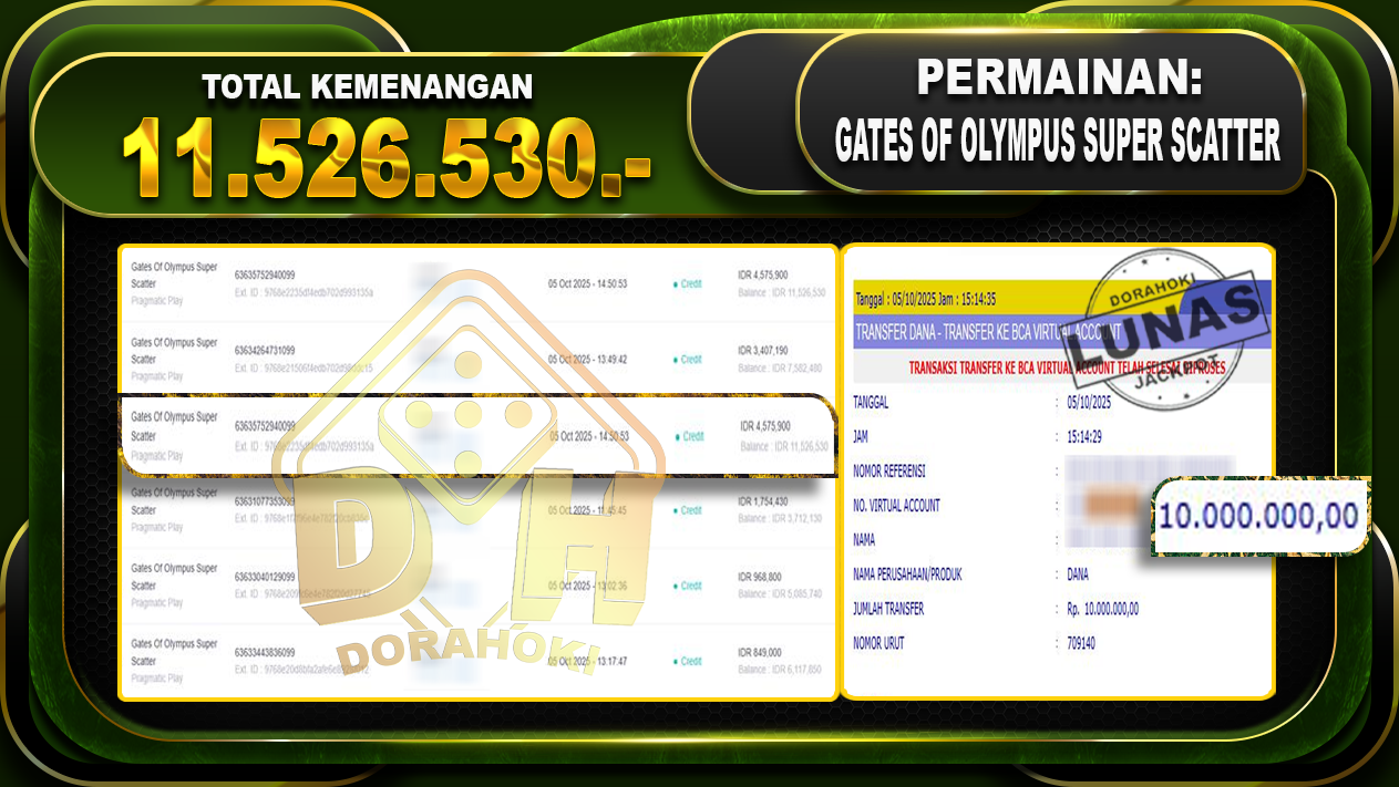 Bukti JP Gates Of Olympus Super Scatter – ucapkan selamat kepada user id yudxxxx atas kemenangan di Gates Of Olympus Super Scatter dengan total kemenangan Rp.11.526.530,- Yang pasti nya langsung LUNAS sesuai bukti ya bosku. Dorahoki nih bosku berapapun akan tetap kami bayar lunas ya bosku