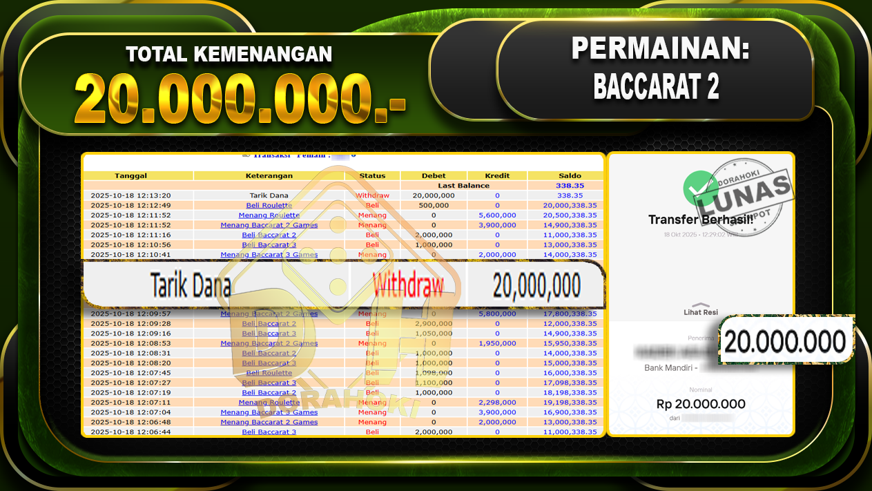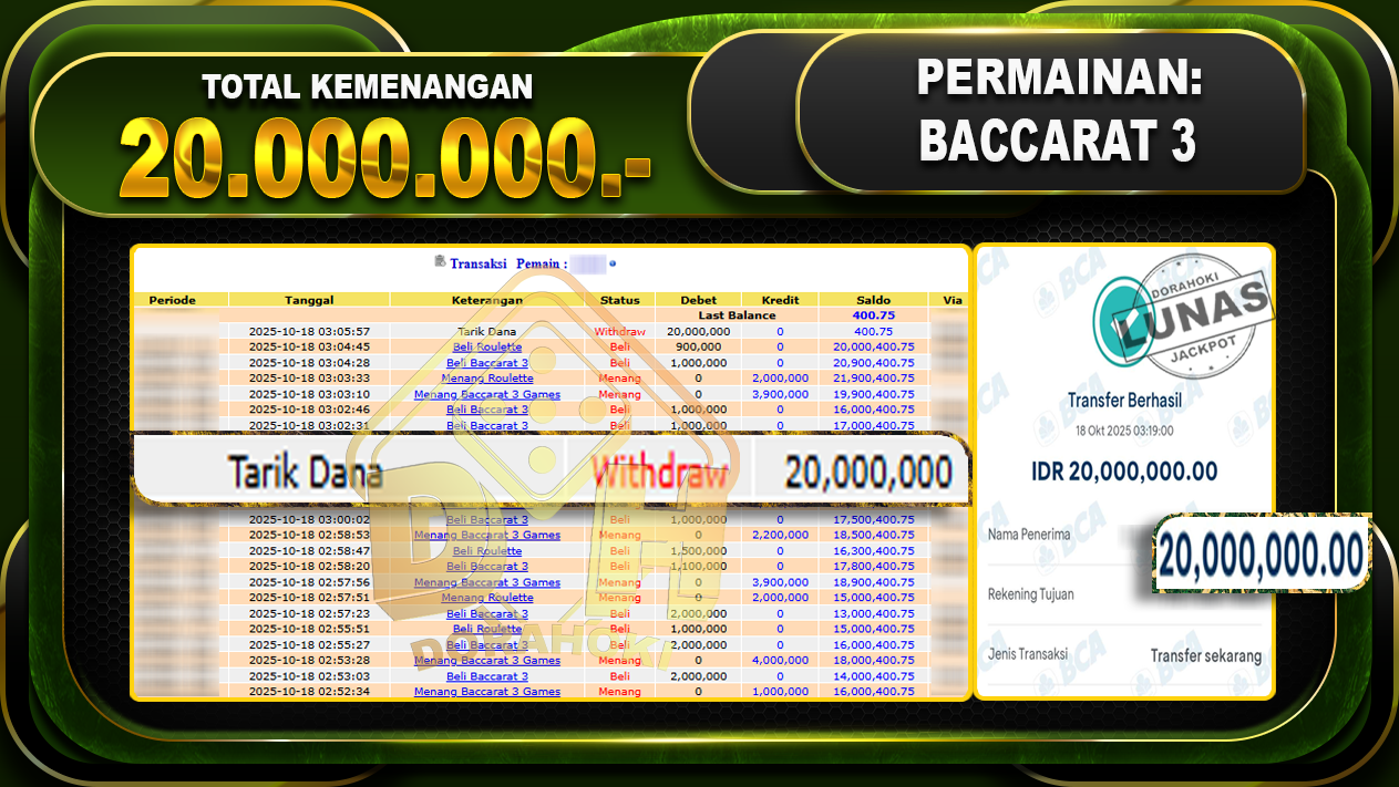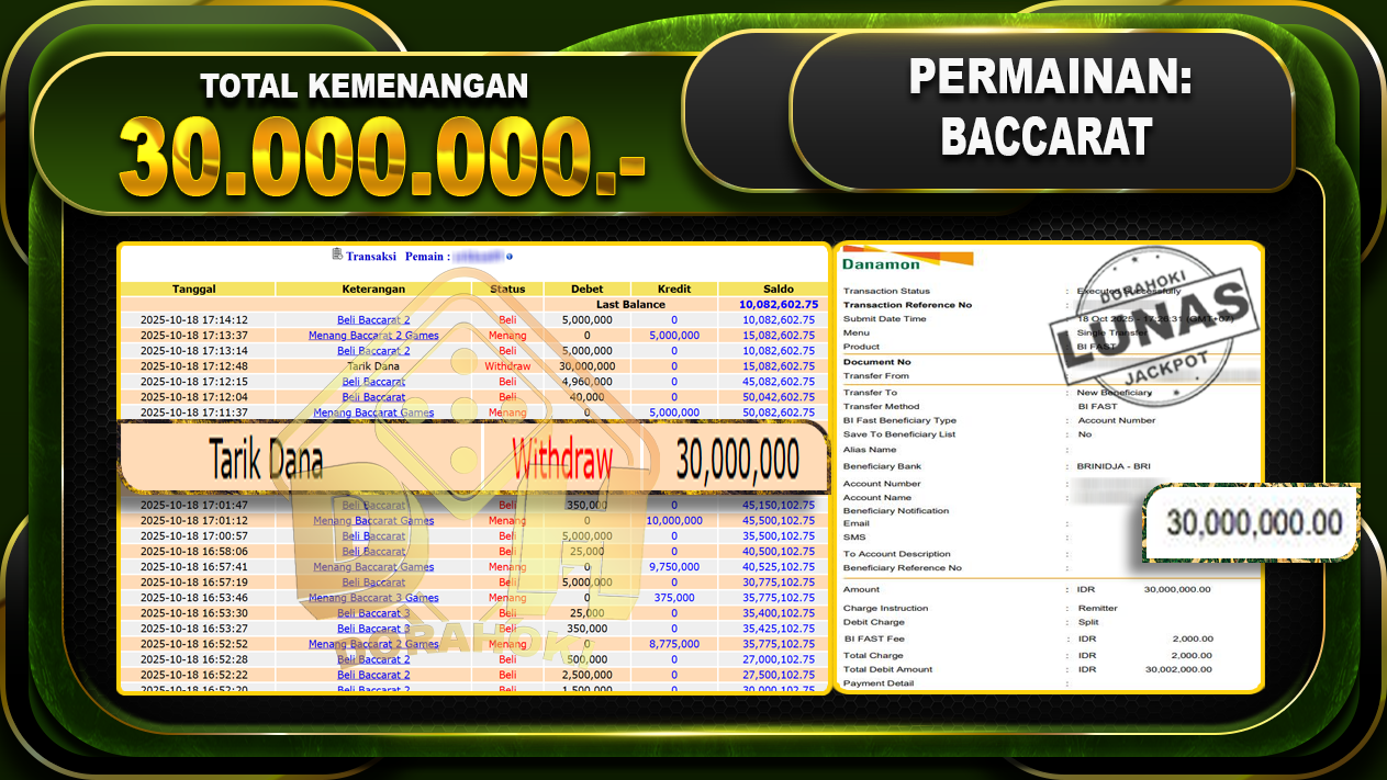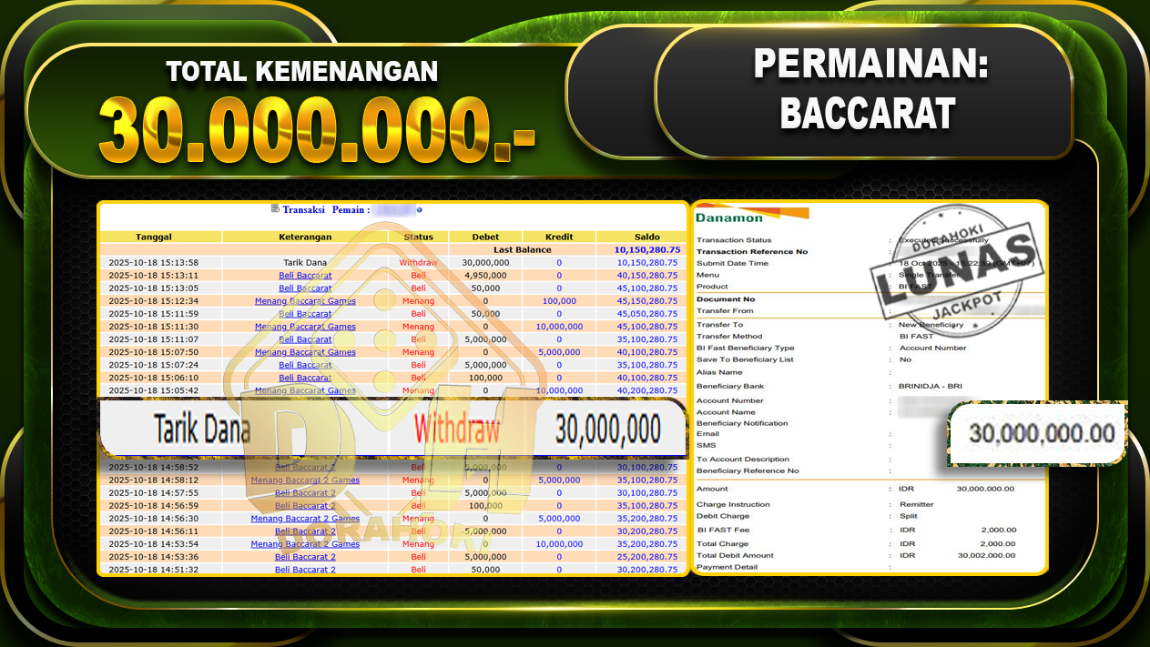 Bukti JP Livecasino Roulette – Kami ucapkan selamat kepada user id afrixxx atas kemenangan di Livecasino dengan total kemenangan Rp.50,000,000,- . Yang pasti nya langsung LUNAS sesuai bukti ya bosku. Dorahoki nih bosku berapapun akan tetap kami bayar lunas ya bosku.