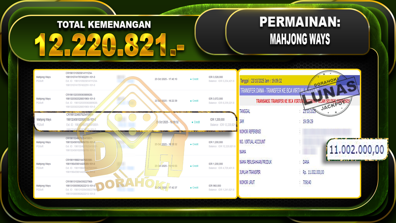Bukti JP MAHJONG WAYS 2 – ucapkan selamat kepada user id BBYxxx atas kemenangan di MAHJONG WAYS 2 dengan total kemenangan Rp.23.989.316- . Yang pasti nya langsung LUNAS sesuai bukti ya bosku. Dorahoki nih bosku berapapun akan tetap kami bayar lunas ya bosku.