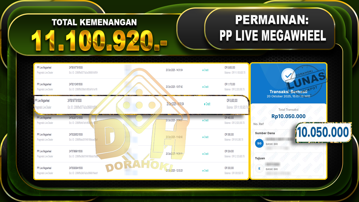 Bukti JP PP Live Megawheel – ucapkan selamat kepada user id brixxxx atas kemenangan di PP Live Megawheel dengan total kemenangan Rp.11.100.920,- Yang pasti nya langsung LUNAS sesuai bukti ya bosku. Dorahoki nih bosku berapapun akan tetap kami bayar lunas ya bosku