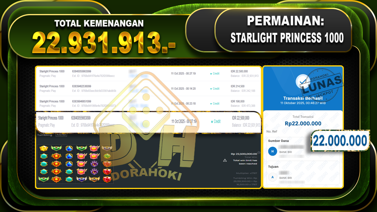 Bukti JP Starlight Princess 1000 – ucapkan selamat kepada user id atixxx atas kemenangan di Starlight Princess 1000 dengan total kemenangan Rp.22,931,913,- Yang pasti nya langsung LUNAS sesuai bukti ya bosku. Dorahoki nih bosku berapapun akan tetap kami bayar lunas ya bosku
