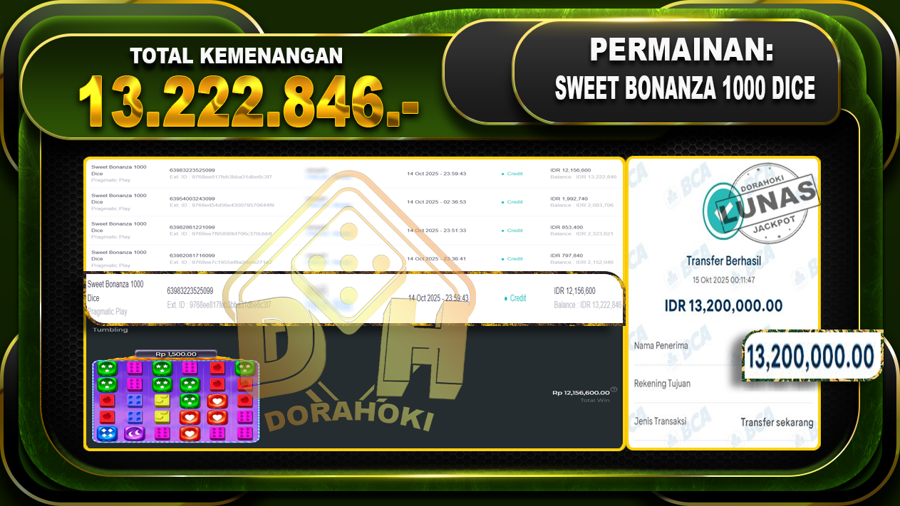 Bukti JP Sweet Slot Mania – ucapkan selamat kepada user id Slotterxxx atas kemenangan di Sweet Slot Mania dengan total kemenangan Rp.11,750,000,- . Yang pasti nya langsung LUNAS sesuai bukti ya bosku. Dorahoki nih bosku berapapun akan tetap kami bayar lunas ya bosku.
