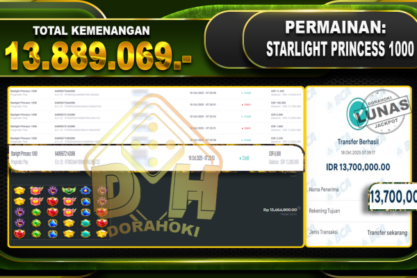 Bukti JP Starlight Princess super scatter – ucapkan selamat kepada user id hokxxxxx atas kemenangan di Starlight Princess super scatter dengan total kemenangan Rp.14,637,687,- Yang pasti nya langsung LUNAS sesuai bukti ya bosku. Dorahoki nih bosku berapapun akan tetap kami bayar lunas ya bosku