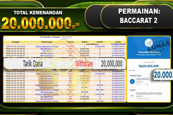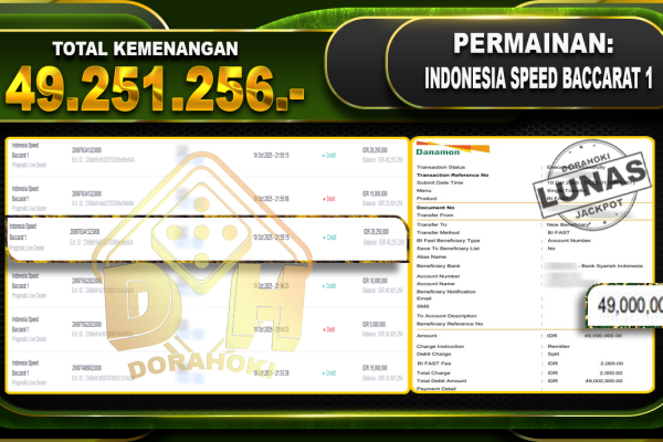 Bukti JP Indonesia Speed Baccarat 1 – ucapkan selamat kepada user id sindxxxxxx atas kemenangan di Indonesia Speed Baccarat 1 dengan total kemenangan Rp.23.000.000,- Yang pasti nya langsung LUNAS sesuai bukti ya bosku. Dorahoki nih bosku berapapun akan tetap kami bayar lunas ya bosku
