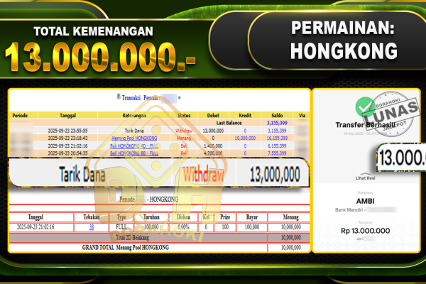Bukti JP TOGEL SINGAPORE – ucapkan selamat kepada user id fanxxxxx atas kemenangan di TOGEL SINGAPORE dengan total kemenangan Rp.10,000,000,- Yang pasti nya langsung LUNAS sesuai bukti ya bosku. Dorahoki nih bosku berapapun akan tetap kami bayar lunas ya bosku