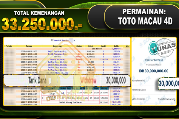 Bukti JP TOGEL SYDNEY – ucapkan selamat kepada user id Garxxx atas kemenangan di TOGEL SYDNEY dengan total kemenangan Rp.10,000,000,- Yang pasti nya langsung LUNAS sesuai bukti ya bosku. Dorahoki nih bosku berapapun akan tetap kami bayar lunas ya bosku