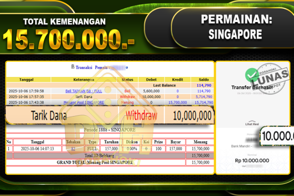 Bukti JP Poker Mania 1024 – ucapkan selamat kepada user id rahxxxxx atas kemenangan di Poker Mania 1024 dengan total kemenangan Rp.45,926,507,- Yang pasti nya langsung LUNAS sesuai bukti ya bosku. Dorahoki nih bosku berapapun akan tetap kami bayar lunas ya bosku