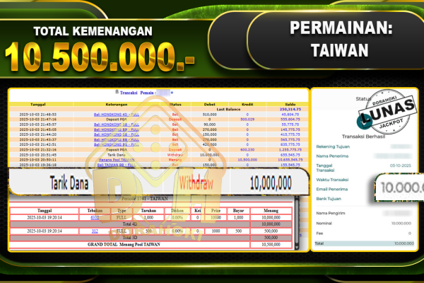 Bukti JP TOGEL TOTO MACAU – ucapkan selamat kepada user id sigxxxxx atas kemenangan di TOGEL TOTO MACAU dengan total kemenangan Rp.12,515,000,- Yang pasti nya langsung LUNAS sesuai bukti ya bosku. Dorahoki nih bosku berapapun akan tetap kami bayar lunas ya bosku