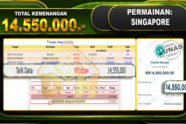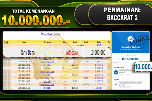 Bukti JP BACCARAT 3 GAMES – ucapkan selamat kepada user id arkhxxxxx atas kemenangan di BACCARAT 3 GAMES dengan total kemenangan Rp.10.000.000,- . Yang pasti nya langsung LUNAS sesuai bukti ya bosku. Dorahoki nih bosku berapapun akan tetap kami bayar lunas ya bosku.