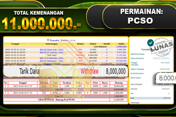 Bukti JP Gates Of Gatot Kaca 1000 – ucapkan selamat kepada user id sagxxxx atas kemenangan di Gates Of Gatot Kaca 1000 dengan total kemenangan Rp.12,957,101,- Yang pasti nya langsung LUNAS sesuai bukti ya bosku. Dorahoki nih bosku berapapun akan tetap kami bayar lunas ya bosku.