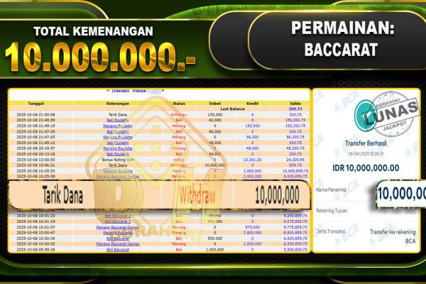 Bukti JP Indonesia Speed Baccarat 1 – ucapkan selamat kepada user id Sindxxxx atas kemenangan di Indonesia Speed Baccarat 1 dengan total kemenangan Rp.46.875.221,- Yang pasti nya langsung LUNAS sesuai bukti ya bosku. Dorahoki nih bosku berapapun akan tetap kami bayar lunas ya bosku