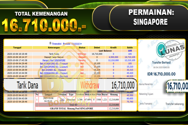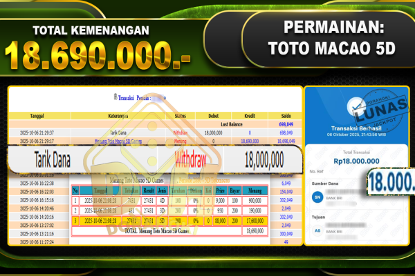 Bukti JP Gates Of Olympus – ucapkan selamat kepada user id bowxx atas kemenangan di Gates Of Olympus dengan total kemenangan Rp.10,650.000,- Yang pasti nya langsung LUNAS sesuai bukti ya bosku. Dorahoki nih bosku berapapun akan tetap kami bayar lunas ya bosku