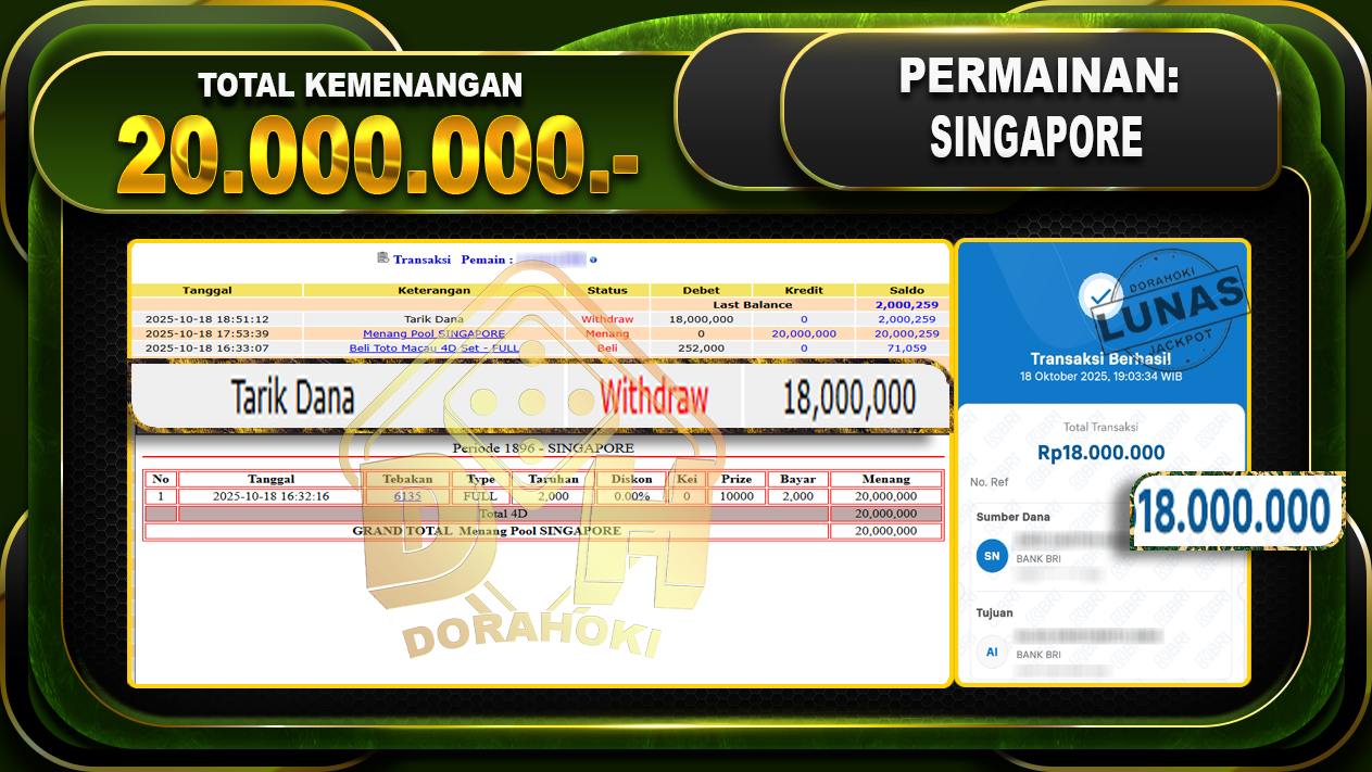 DORAHOKI NIH BOSKU! MENANG BERAPAPUN PASTI KAMI BAYAR LUNAS!!