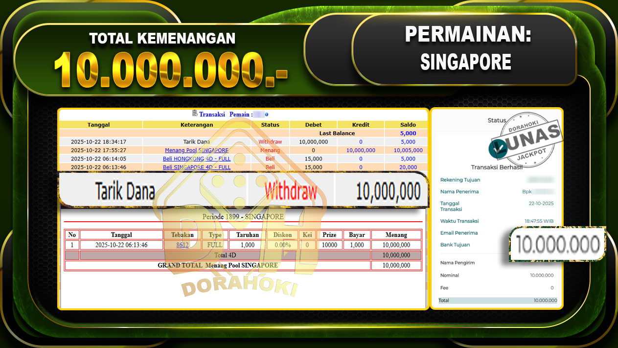 DORAHOKI NIH BOSKU! MENANG BERAPAPUN PASTI KAMI BAYAR LUNAS!!