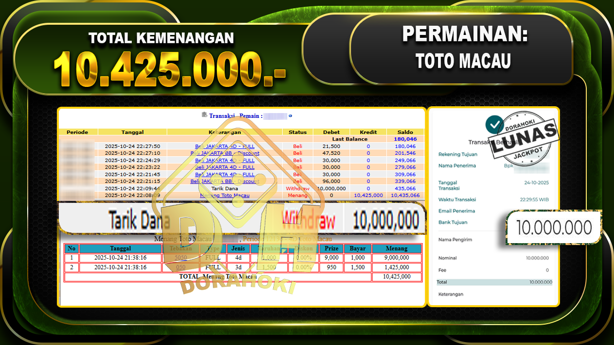 Dalam memilih BO favorit hal terpenting yang harus di perhatikan adalah besaran hadiah yang ditawarkan. Berikut hadiah yang kami tawarkan di DORAHOKI: