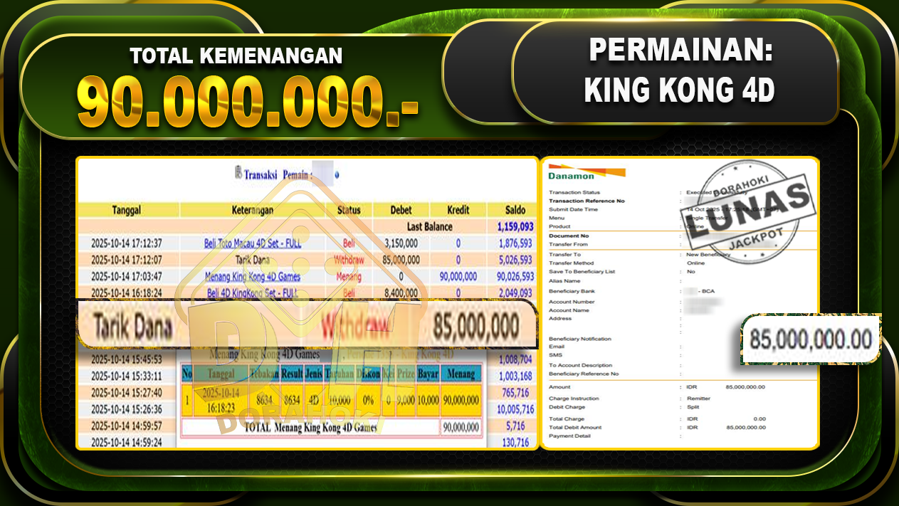 Bukti JP TOGEL SYDNEY – ucapkan selamat kepada user id pendxxx atas kemenangan di TOGEL SYDNEY dengan total kemenangan Rp 10.000.000,- . Yang pasti nya langsung LUNAS sesuai bukti ya bosku. Dorahoki nih bosku berapapun akan tetap kami bayar lunas ya bosku.