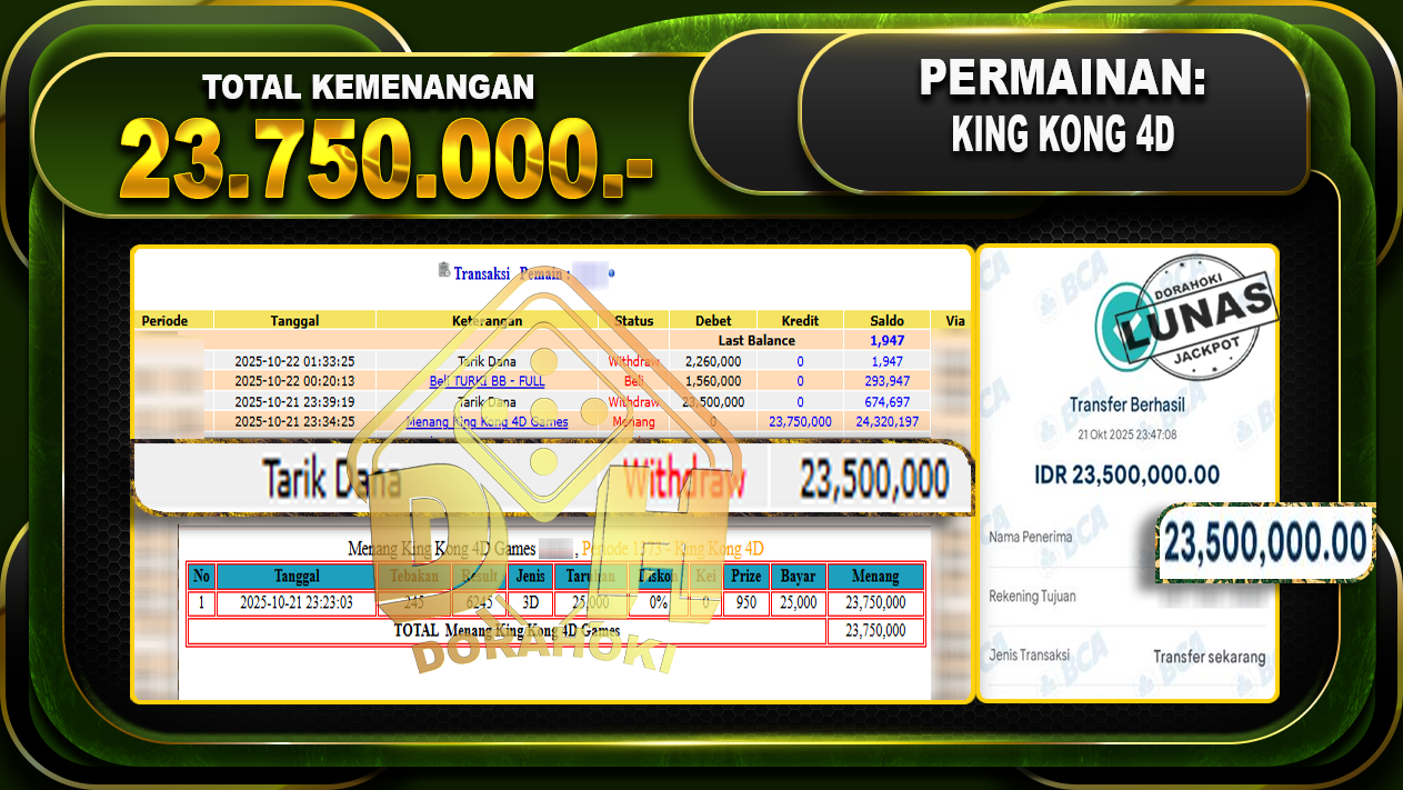 Kami mengucapkan Terima Kasih telah mempercayakan DORAHOKI sebagai Bandar Online pilihan dalam bermain judi online. Semoga bosku bisa tetap bermain dengan nyaman ya bosku di Bandar Online kami ini ya bosku. Jika ada kendala bisa langsung hubungi CS kami di livechat dan WA yang online 24 jam tanpa libur ya bosku. Semoga kedepannya bosku bisa JP lebih banyak lagi dan tentu saja tidak perlu khawatir untuk pembayaran. DORAHOKI merupakan Bandar Online yg Aman dan Terpercaya JackPot berapapun pasti akan kami bayarkan langsung LUNAS ya bosku.