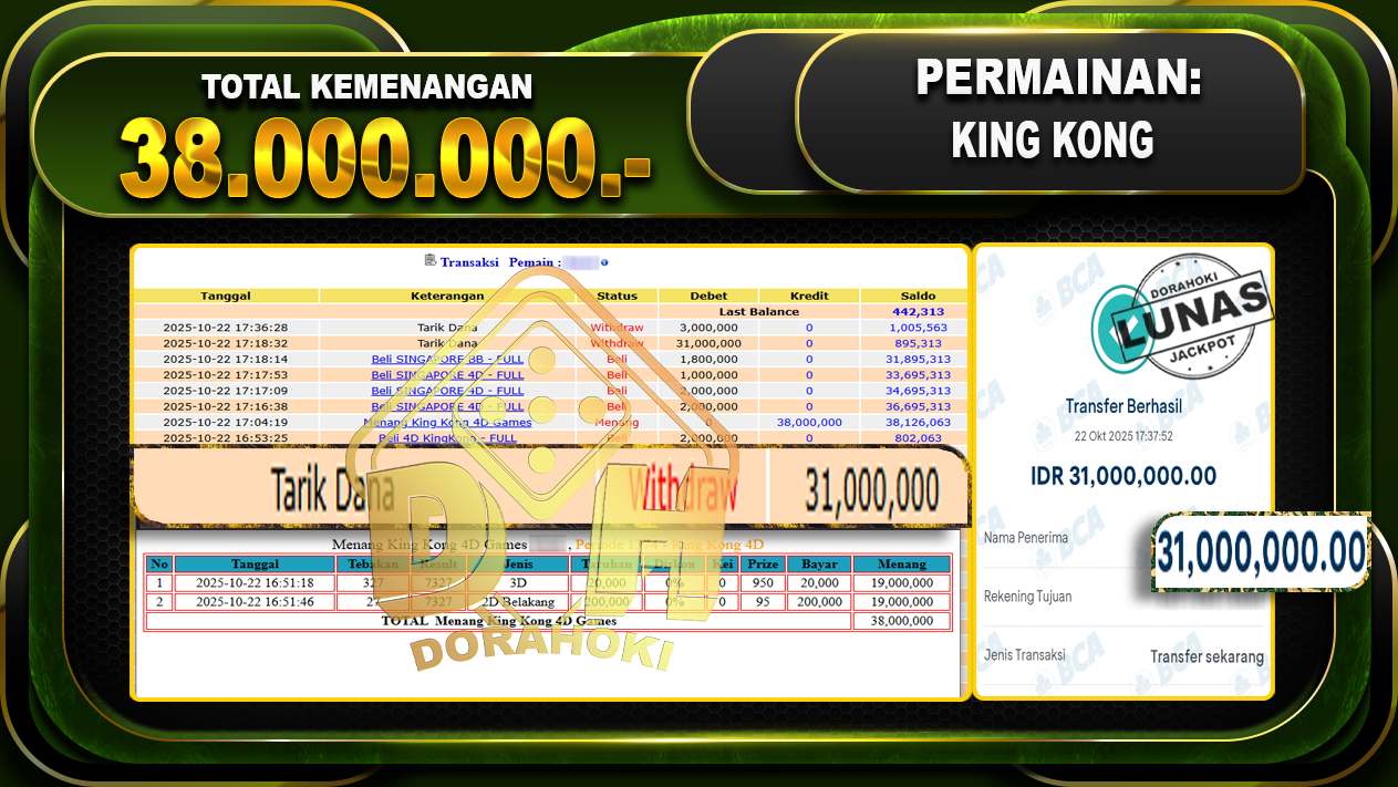 Kami mengucapkan Terima Kasih telah mempercayakan DORAHOKI sebagai Bandar Online pilihan dalam bermain judi online. Semoga bosku bisa tetap bermain dengan nyaman ya bosku di Bandar Online kami ini ya bosku. Jika ada kendala bisa langsung hubungi CS kami di livechat dan WA yang online 24 jam tanpa libur ya bosku. Semoga kedepannya bosku bisa JP lebih banyak lagi dan tentu saja tidak perlu khawatir untuk pembayaran. DORAHOKI merupakan Bandar Online yg Aman dan Terpercaya JackPot berapapun pasti akan kami bayarkan langsung LUNAS ya bosku.