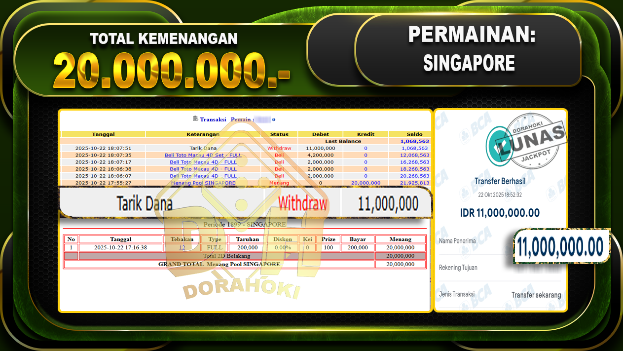 Bukti JP TOGEL Toto Macao 5D Games – ucapkan selamat kepada user id Grexxx atas kemenangan di TOGEL Toto Macao 5D Games dengan total kemenangan Rp.19.900.000,- Yang pasti nya langsung LUNAS sesuai bukti ya bosku. Dorahoki nih bosku berapapun akan tetap kami bayar lunas ya bosku.