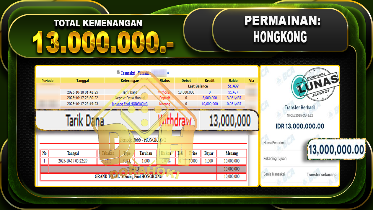 DORAHOKI NIH BOSKU! MENANG BERAPAPUN PASTI KAMI BAYAR LUNAS!!
